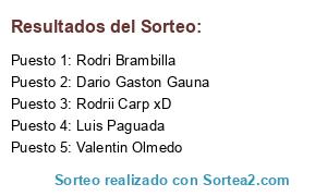 Lista de participantes: Rodrii Carp xD, Valentin Olmedo, Rodri Brambilla, Luis Paguada, Dario Gaston Gauna.
