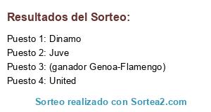 Lista de participantes: (ganador Genoa-Flamengo), Dinamo, Juve, United.