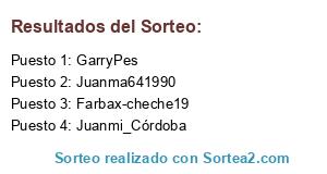 Lista de participantes: Juanmi_Córdoba, GarryPes, Juanma641990, Farbax-cheche19.