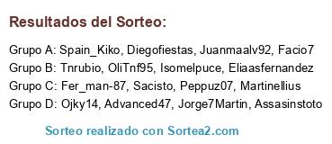 Lista de participantes: Assasinstoto, Facio7, Spain_Kiko, Diegofiestas, Eliaasfernandez, Fer_man-87, Juanmaalv92, Jorge7Martin, Tnrubio, OliTnf95, Isomelpuce, Peppuz07, Martinellius, Advanced47, Ojky14, Sacisto.