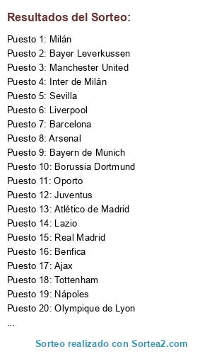Lista de participantes: Liverpool, Manchester City, Manchester United, Tottenham, Arsenal, Chelsea, Real Madrid, Barcelona, Atlético de Madrid, Sevilla, Juventus, Nápoles, Inter de Milán, Milán, Lazio, Bayern de Munich, Borussia Dortmund, Bayer Leverkussen, PSG, Olympique de Lyon, Olympique de Marsella, Oporto, Benfica, Ajax.