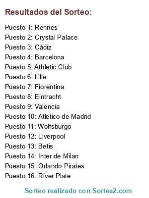 Lista de participantes: Athletic Club, Liverpool, Betis, Crystal Palace, Valencia, Barcelona, Lille, Inter de Milan, Wolfsburgo, Rennes, Cádiz, Atletico de Madrid, Eintracht, River Plate, Fiorentina, Orlando Pirates.