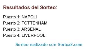 Lista de participantes: TOTTENHAM, LIVERPOOL, NAPOLI, ARSENAL.