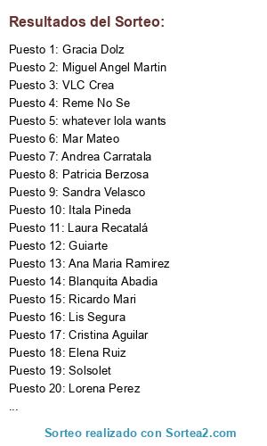 Lista de participantes: Lorena Perez, Ricardo Mari, Miguel Angel Martin, Su Ferrando, Somocar More, Andrea Carratala, Ana Maria Ramirez, Lis Segura, Mar Mateo, Itala Pineda, Patricia Berzosa, Blanquita Abadia, Sandra Velasco, Guiarte, VLC Crea, Solsolet, Costurera de retales, whatever lola wants, Reme No Se, Gracia Dolz, Cristina Aguilar, Elena Ruiz, Laura Recatalá.