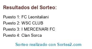 Lista de participantes: I MERCENARI FC, FC Leonitaliani, WSC CLUB, Clan Sorca.