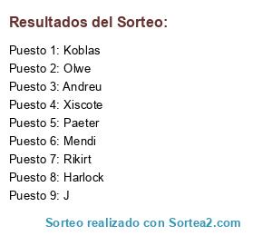Lista de participantes: Paeter, Mendi, Xiscote, J, Olwe, Koblas, Harlock, Rikirt, Andreu.