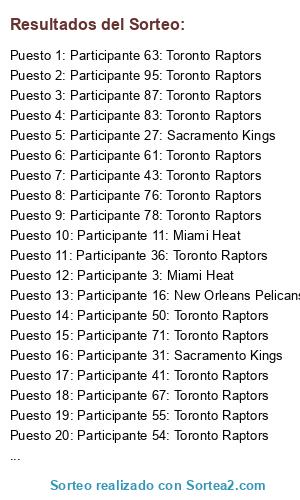 - Puesto 2: Participante 95: Toronto Raptors