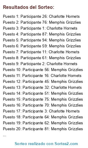 - Puesto 15: Participante 75: Memphis Grizzlies