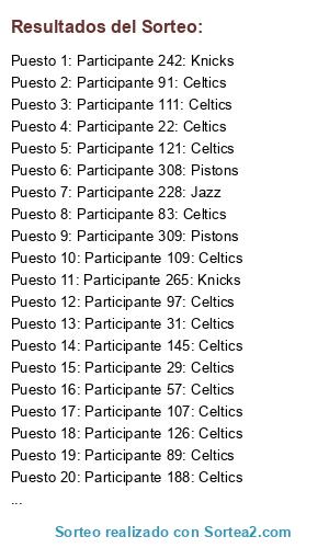 Lista de participantes: Participante 1: Celtics, Participante 2: Celtics, Participante 3: Celtics, Participante 4: Celtics, Participante 5: Celtics, Participante 6: Celtics, Participante 7: Celtics, Participante 8: Celtics, Participante 9: Celtics, Participante 10: Celtics, Participante 11: Celtics, Participante 12: Celtics, Participante 13: Celtics, Participante 14: Celtics, Participante 15: Celtics, Participante 16: Celtics, Participante 17: Celtics, Participante 18: Celtics, Participante 19: Celtics, Participante 20: Celtics, Participante 21: Celtics, Participante 22: Celtics, Participante 23: Celtics, Participante 24: Celtics, Participante 25: Celtics, Participante 26: Celtics, Participante 27: Celtics, Participante 28: Celtics, Participante 29: Celtics, Participante 30: Celtics, Participante 31: Celtics, Participante 32: Celtics, Participante 33: Celtics, Participante 34: Celtics, Participante 35: Celtics, Participante 36: Celtics, Participante 37: Celtics, Participante 38: Celtics, Participante 39: Celtics, Participante 40: Celtics, Participante 41: Celtics, Participante 42: Celtics, Participante 43: Celtics, Participante 44: Celtics, Participante 45: Celtics, Participante 46: Celtics, Participante 47: Celtics, Participante 48: Celtics, Participante 49: Celtics, Participante 50: Celtics, Participante 51: Celtics, Participante 52: Celtics, Participante 53: Celtics, Participante 54: Celtics, Participante 55: Celtics, Participante 56: Celtics, Participante 57: Celtics, Participante 58: Celtics, Participante 59: Celtics, Participante 60: Celtics, Participante 61: Celtics, Participante 62: Celtics, Participante 63: Celtics, Participante 64: Celtics, Participante 65: Celtics, Participante 66: Celtics, Participante 67: Celtics, Participante 68: Celtics, Participante 69: Celtics, Participante 70: Celtics, Participante 71: Celtics, Participante 72: Celtics, Participante 73: Celtics, Participante 74: Celtics, Participante 75: Celtics, Participante 76: Celtics, Participante 77: Celtics, Participante 78: Celtics, Participante 79: Celtics, Participante 80: Celtics, Participante 81: Celtics, Participante 82: Celtics, Participante 83: Celtics, Participante 84: Celtics, Participante 85: Celtics, Participante 86: Celtics, Participante 87: Celtics, Participante 88: Celtics, Participante 89: Celtics, Participante 90: Celtics, Participante 91: Celtics, Participante 92: Celtics, Participante 93: Celtics, Participante 94: Celtics, Participante 95: Celtics, Participante 96: Celtics, Participante 97: Celtics, Participante 98: Celtics, Participante 99: Celtics, Participante 100: Celtics, Participante 101: Celtics, Participante 102: Celtics, Participante 103: Celtics, Participante 104: Celtics, Participante 105: Celtics, Participante 106: Celtics, Participante 107: Celtics, Participante 108: Celtics, Participante 109: Celtics, Participante 110: Celtics, Participante 111: Celtics, Participante 112: Celtics, Participante 113: Celtics, Participante 114: Celtics, Participante 115: Celtics, Participante 116: Celtics, Participante 117: Celtics, Participante 118: Celtics, Participante 119: Celtics, Participante 120: Celtics, Participante 121: Celtics, Participante 122: Celtics, Participante 123: Celtics, Participante 124: Celtics, Participante 125: Celtics, Participante 126: Celtics, Participante 127: Celtics, Participante 128: Celtics, Participante 129: Celtics, Participante 130: Celtics, Participante 131: Celtics, Participante 132: Celtics, Participante 133: Celtics, Participante 134: Celtics, Participante 135: Celtics, Participante 136: Celtics, Participante 137: Celtics, Participante 138: Celtics, Participante 139: Celtics, Participante 140: Celtics, Participante 141: Celtics, Participante 142: Celtics, Participante 143: Celtics, Participante 144: Celtics, Participante 145: Celtics, Participante 146: Celtics, Participante 147: Celtics, Participante 148: Celtics, Participante 149: Celtics, Participante 150: Celtics, Participante 151: Celtics, Participante 152: Celtics, Participante 153: Celtics, Participante 154: Celtics, Participante 155: Celtics, Participante 156: Celtics, Participante 157: Celtics, Participante 158: Celtics, Participante 159: Celtics, Participante 160: Celtics, Participante 161: Celtics, Participante 162: Celtics, Participante 163: Celtics, Participante 164: Celtics, Participante 165: Celtics, Participante 166: Celtics, Participante 167: Celtics, Participante 168: Celtics, Participante 169: Celtics, Participante 170: Celtics, Participante 171: Celtics, Participante 172: Celtics, Participante 173: Celtics, Participante 174: Celtics, Participante 175: Celtics, Participante 176: Celtics, Participante 177: Celtics, Participante 178: Celtics, Participante 179: Celtics, Participante 180: Celtics, Participante 181: Celtics, Participante 182: Celtics, Participante 183: Celtics, Participante 184: Celtics, Participante 185: Celtics, Participante 186: Celtics, Participante 187: Celtics, Participante 188: Celtics, Participante 189: Celtics, Participante 190: Celtics, Participante 191: Celtics, Participante 192: Celtics, Participante 193: Celtics, Participante 194: Celtics, Participante 195: Celtics, Participante 196: Celtics, Participante 197: Celtics, Participante 198: Jazz, Participante 199: Jazz, Participante 200: Jazz, Participante 201: Jazz, Participante 202: Jazz, Participante 203: Jazz, Participante 204: Jazz, Participante 205: Jazz, Participante 206: Jazz, Participante 207: Jazz, Participante 208: Jazz, Participante 209: Jazz, Participante 210: Jazz, Participante 211: Jazz, Participante 212: Jazz, Participante 213: Jazz, Participante 214: Jazz, Participante 215: Jazz, Participante 216: Jazz, Participante 217: Jazz, Participante 218: Jazz, Participante 219: Jazz, Participante 220: Jazz, Participante 221: Jazz, Participante 222: Jazz, Participante 223: Jazz, Participante 224: Jazz, Participante 225: Jazz, Participante 226: Jazz, Participante 227: Jazz, Participante 228: Jazz, Participante 229: Jaz