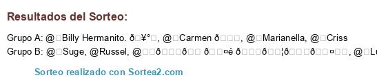 Lista de participantes: @Luis, @Billy Hermanito. 🥰, @Marianella, @Suge, @Carmen 💞, @༆𝕁𝕠𝕤é 𝕃𝕦𝕚𝕤❦᭄, @Criss, @Russel.