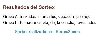 Lista de participantes: reventados, trinkados, mamados, la concha, de, tu madre es pta, pito rojo, deeaeda.