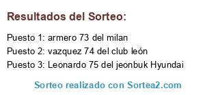 Lista de participantes: armero 73 del milan, vazquez 74 del club león, Leonardo 75 del jeonbuk Hyundai.