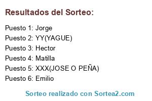 Lista de participantes: Jorge, Emilio, Hector, Matilla, XXX(JOSE O PEÑA), YY(YAGUE).