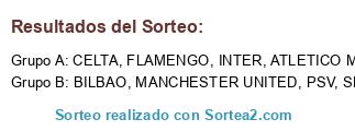 Lista de participantes: FLAMENGO, SHAKTAR, INTER, BILBAO, ATLETICO MADRID, PSV, CELTA, MANCHESTER UNITED.