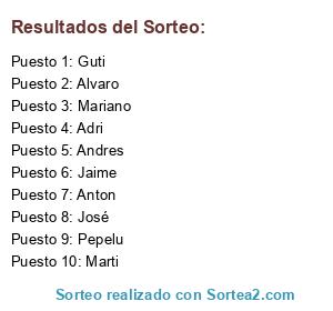 Lista de participantes: Guti, Anton, Jaime, Andres, Mariano, Marti, Adri, José, Pepelu, Alvaro.