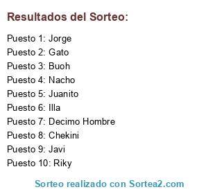 Lista de participantes: Nacho, Jorge, Javi, Buoh, Chekini, Riky, Illa, Juanito, Gato, Decimo Hombre.