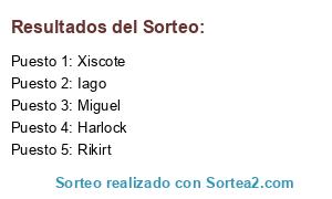 Lista de participantes: Iago, Olwe, Miguel, Xisco, Rikirt, Harlock, Kulkin, Andreu.