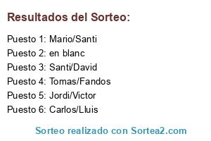 Lista de participantes: Carlos/Lluis, Mario/Santi, Santi/David, Jordi/Victor, Tomas/Fandos, en blanc.