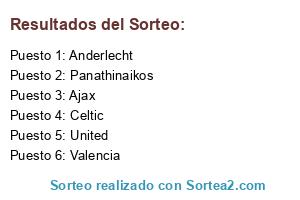 Lista de participantes: Anderlecht, Panathinaikos, Valencia, Celtic, Ajax, United.