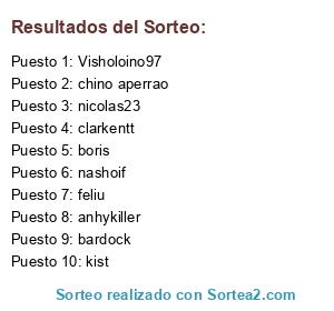 Lista de participantes: kist, nashoif, boris, chino aperrao, nicolas23, feliu, bardock, anhykiller, clarkentt, Visholoino97.