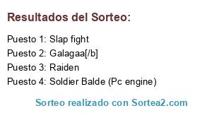 Lista de participantes: terra cresta, Galaga, Slap fight, Soldier Balde (Pc engine), Area 88, Raiden, Galagaa[/b].