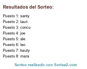 Lista de participantes: leo, santy, mara, lauri, bauty, concu, ale, joe.