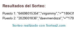 Este sorteo ha sido certificado por Sortea2. Sortea2 garantiza que:
