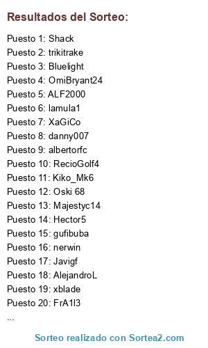 Lista de participantes: 3edu, AlejandroL, ALF2000, anghios, anlausol, Bluelight, bustillo, C0p4, caldesport, Cristianp, danny007, davidcsbn, DIEGOGUTI, dtorreci, duke80, Egiatar, FrA1l3, gufibuba, jandrogb, Javigf, JNV, JRMoral, Kabra, Kiko_Mk6, kkirilov, lamula1, Majestyc14, Miguel20, Morgades, NachoMk1Ca, Najarro, None_002, oblop, OmiBryant24, Oski 68, PacoRu, PedroFM6, perinkel, Petepan, pi_daikin, popigti, RecioGolf4, riderIV, RosaDavid, Samu_GTI6, Scoot, trikitrake, VW España, XaGiCo, xblade, Hector5, nerwin, jfim88, Shack, Spr, Edygtd, albertorfc, I_Saeta, BUSTI1979.