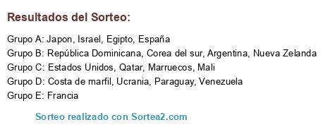 Lista de participantes: Francia, Estados Unidos, República Dominicana, España, Israel, Ucrania, Egipto, Marruecos, Mali, Nueva Zelanda, Japon, Corea del sur, Qatar, Costa de marfil, Argentina, Paraguay, Venezuela.
