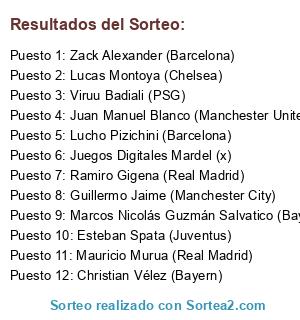 Resultados del sorteo: