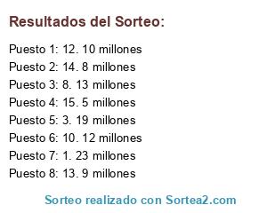 Lista de participantes: 1. 23 millones, 3. 19 millones, 8. 13 millones, 10. 12 millones, 12. 10 millones, 13. 9 millones, 14. 8 millones, 15. 5 millones.