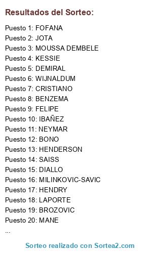 Lista de participantes: BROZOVIC, OTAVIO, MESSI, MANE, CRISTIANO, LAPORTE, FOFANA, TELLES, KOULIBALY, MITROVIC, R.NEVES, NEYMAR, BONO, MALCOM, MILINKOVIC-SAVIC, FABINHO, KANTE, BENZEMA, JOTA, FELIPE, POR MENDY, MAHREZ, FIRMINO, IBAÑEZ, KESSIE, DEMIRAL, VEIGA, SAINT-MAXIMIN, WIJNALDUM, HENDERSON, MOUSSA DEMBELE, HENDRY, GRAY, CARRASCO, DIALLO, SAISS.