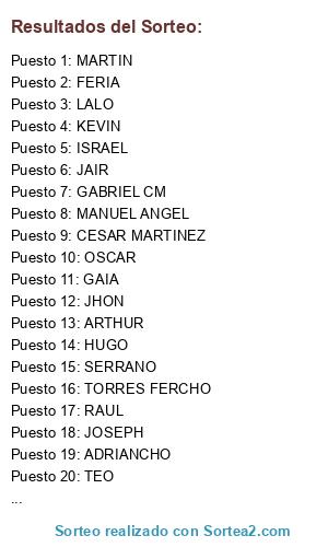 Resultados del sorteo: