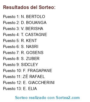 Lista de participantes: R. KENT, D. BOUANGA, S. NASRI, SIDCLEY, ZÉ RAFAEL, R. GOSENS, E. ELIA, F. FRAGAPANE, T. CASTAGNE, E. GIACCHERINI, S. ZUBER, V. BERISHA, N. BERTOLO.
