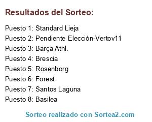 Lista de participantes: Forest, Rosenborg, Brescia, Barça Athl., Standard Lieja, Basilea, Santos Laguna, Pendiente Elección-Vertov11.