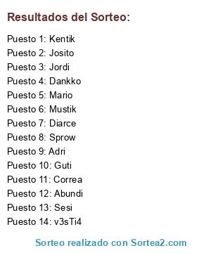 Lista de participantes: Guti, Jordi, v3sTi4, Correa, Abundi, Sprow, Adri, Mario, Josito, Kentik, Mustik, Sesi, Diarce, Dankko.