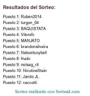 Lista de participantes: notsag_r4, Ruben2014, brandonsilveira, fnatic, MANJATO, Janito JL, BAQUISTATA, Vitorsfc, NicotineStain, turgon_04, Nelsonlucybell, ceccotti.