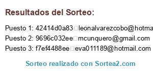 - Puesto 1: 42414d0a83 leonalvarezcobo@hotmail.com
