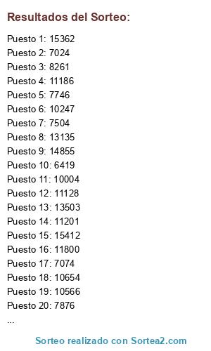 Este sorteo ha sido certificado por Sortea2. Sortea2 garantiza que: