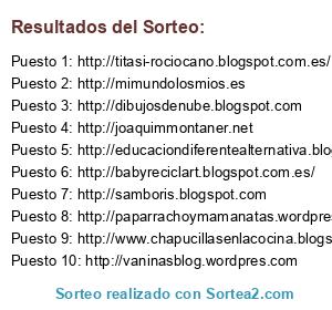 Lista de participantes: ttp://www.mamapediatraymas.blogspot.com, http://www.chapucillasenlacocina.blogspot.com, http://pipopipeypapas.wordpress.com, http://paparrachoymamanatas.wordpress.com, http://vaninasblog.wordpres.com, http://7paresdekatiuskas.wordpress.com, http://blog.mimuselina.com/, http://perdidaensebastopol.blogspot.com.es, http://futuroambientalsostenible.blogspot.com.es/, http://sradiaz.wordpress.com/, http://www.algodonentrelasflores.wordpress.com, http://desdequetesenti.blogspot.com.es/, http://madrescabreadas.tumblr.com, http://urbanmon.wordpress.com, http://Mamiusiblogspot.com, http://dibujosdenube.blogspot.com, http://joaquimmontaner.net, http://www.mamaorienta.com/, http://www.mamasviajeras.com/, http://unamadremolona.com, http://titasi-rociocano.blogspot.com.es/, http://www.micestademimbre.com, http://patypeando.blogspot.com, http://babyreciclart.blogspot.com.es/, http://matronaonline.net, http://elblogdebombones.com, http://samboris.blogspot.com, http://www.laaventurademiembarazo.com, http://blogdeunamadredesesperada.blogspot.com.es, http://todomundopeques.blogspot.com, http://www.historiasdepitufines.com, http://mujerdespuesdelos40.blogspot.com.es/, http://creciendoconnuestrocachorro.wordpress.com, http://gemeleando.blogspot.com.es, http://senorbebe.blogspot.com, http://felizenbrazos.wordpress.com, http://educaciondiferentealternativa.blogspot.com/, http://www.ropalactancia.com, http://www.bebefriki.es, http://mimundolosmios.es, http://bebetetaymimitos.es/, .