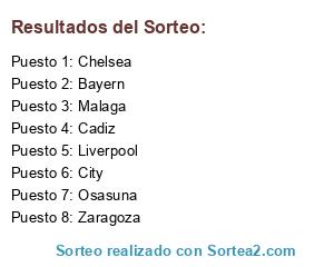 Lista de participantes: Bayern, Liverpool, Malaga, Zaragoza, Chelsea, City, Cadiz, Osasuna.