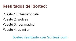 Lista de participantes: real madrid, wolves, internazionale, ac milan.