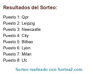 Lista de participantes: Qpr, Milan, Lfc, Bilbao, Leipzig, City, Lyon, Newcastle.