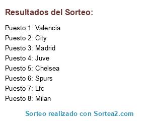 Lista de participantes: Spurs, Madrid, Lfc, Chelsea, Milan, Newcastle, City, Juve, Valencia.