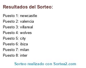 Lista de participantes: valencia, city, villareal, wolves, newcastle, inter, ibiza, milan.