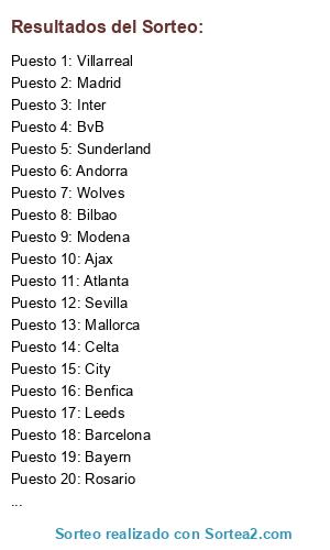 Resultados del sorteo: