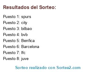 Lista de participantes: city, juve, lfc, Barcelona, spurs, Benfica, bilbao, bvb.