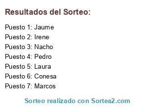 Resultados del sorteo: