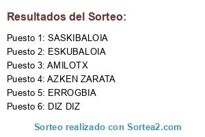 Lista de participantes: ESKUBALOIA, SASKIBALOIA, ERROGBIA, AZKEN ZARATA, DIZ DIZ, AMILOTX.