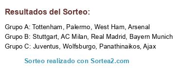 Lista de participantes: Stuttgart, AC Milan, Palermo, Wolfsburgo, Real Madrid, Panathinaikos, Juventus, Bayern Munich, West Ham, Arsenal, Ajax, Tottenham.